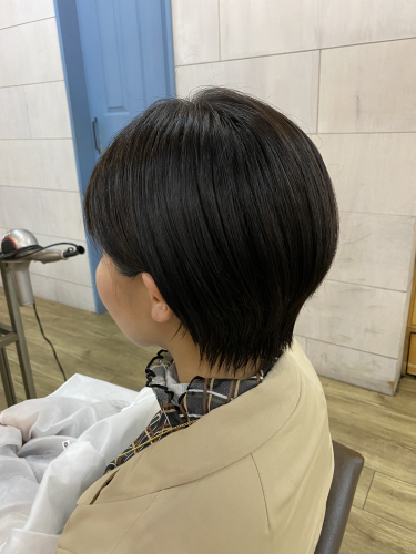 襟足ギリギリの耳掛けコンパクトショート。