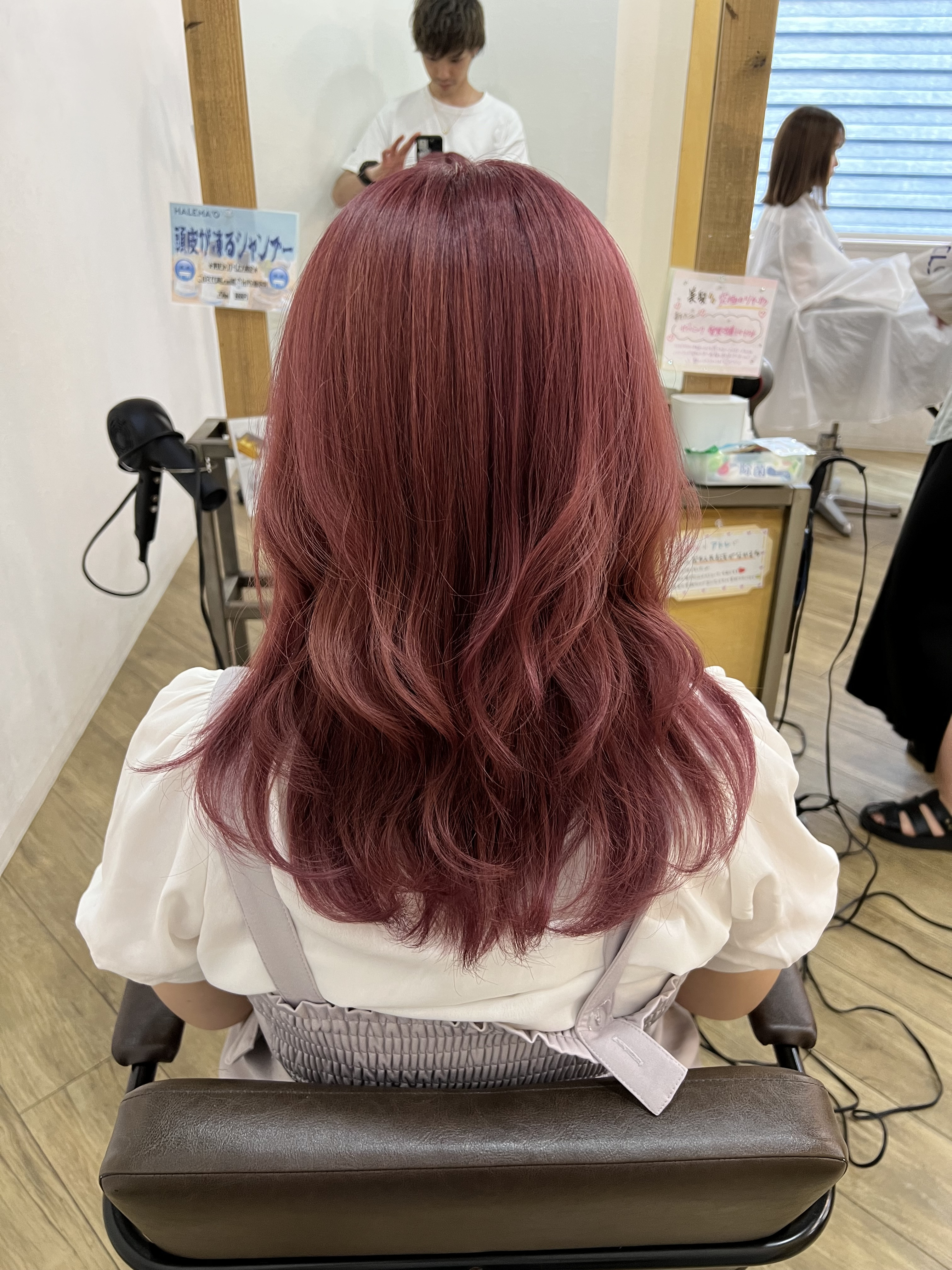 全頭ブリーチしてピンク系でカラーしました。